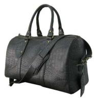 Two day travel bag in two tone croco leather and antique finish hardware.